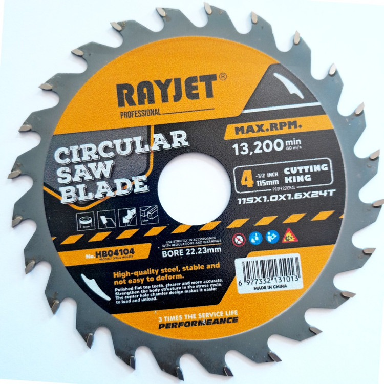 صفحه چوببری مینی فرز RAYJET سایز 115 میلیمتر، مناسب برش انواع چوب طبیعی، MDF، تخته سهلا و نئوپان میباشد. این تیغه با طراحی 24 دندانه تیز و مقاوم، برشی سریع، دقیق و نرم ایجاد میکند و برای استفاده با مینیفرزهای استاندارد بسیار کاربردی است.
