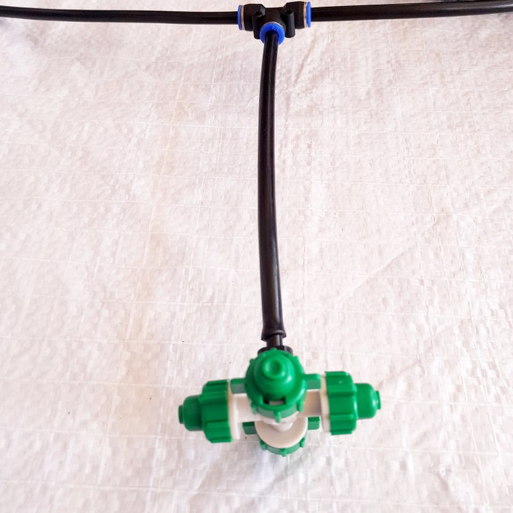 پکیج شامل :: شیر : یک عدد ، شلنگ : 20 متر ، سه راه : 7 عدد ، نازل مه پاش ۴ طرفه : 2 عدد، نازل مه پاش یکطرفه : 6 عدد .
